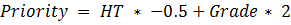 If we want less priority on height and slightly more on Grade, we could state: