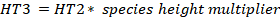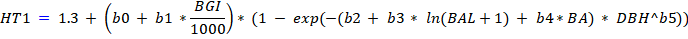 If number of height samples from a plot is ≥ 5, then the HT1 prediction above is boosted (accuracy improved on average) using estimated Lorey’s height (LHT):