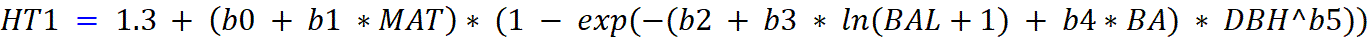 If number of height samples from a plot is ≥ 5, then the HT1 prediction above is boosted (accuracy improved on average) using estimated Lorey’s height (LHT):